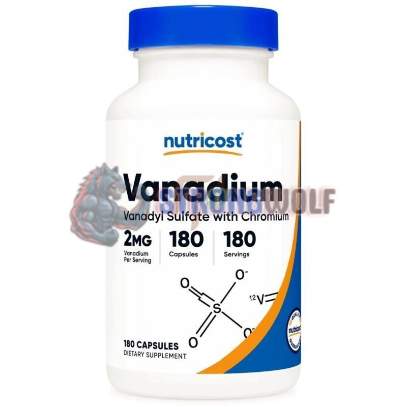 Пищевая добавка от американского бренда Нутрикост содержит микроэлемент ванадий (в форме ванадил сульфата) с добавлением хрома, в веганских капсулах.